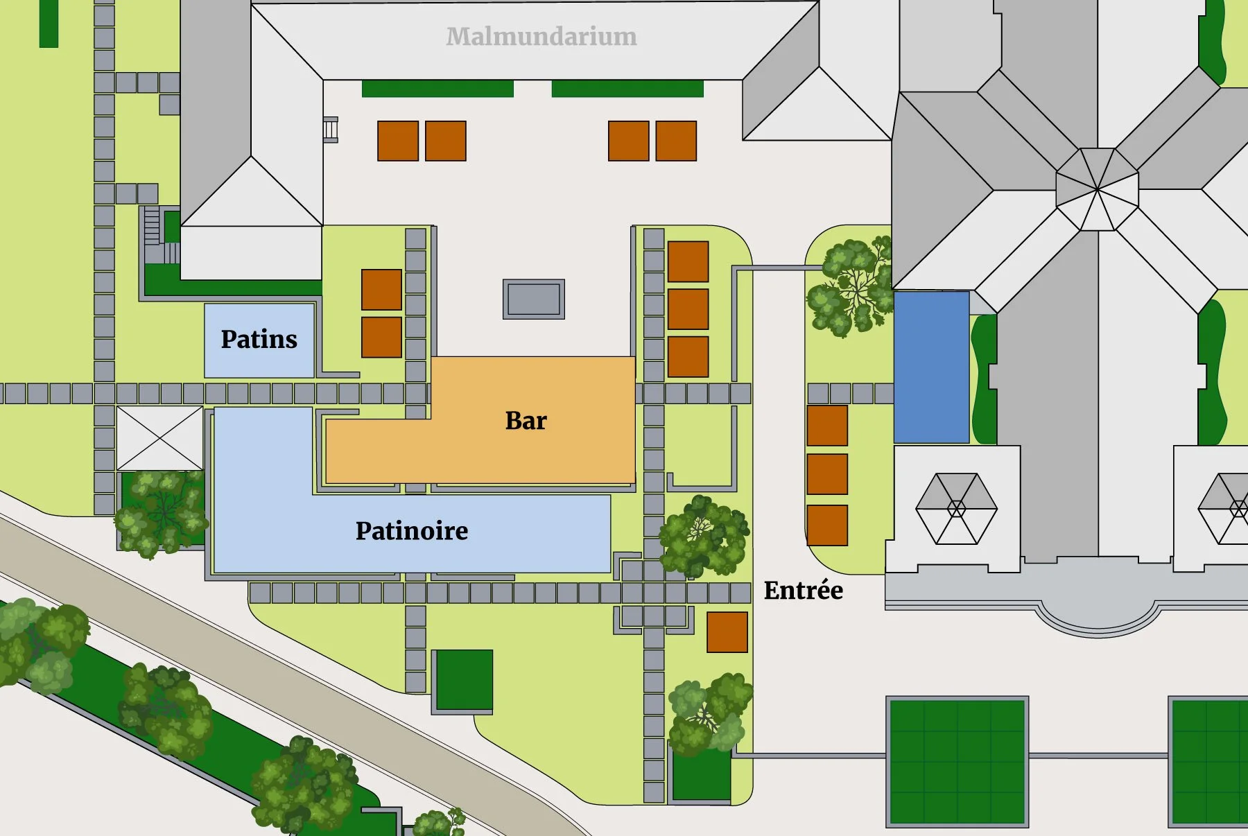 Les chalets sont répartis autour de l’esplanade du Malmundarium de manière à recréer l’effet « village » recherché.